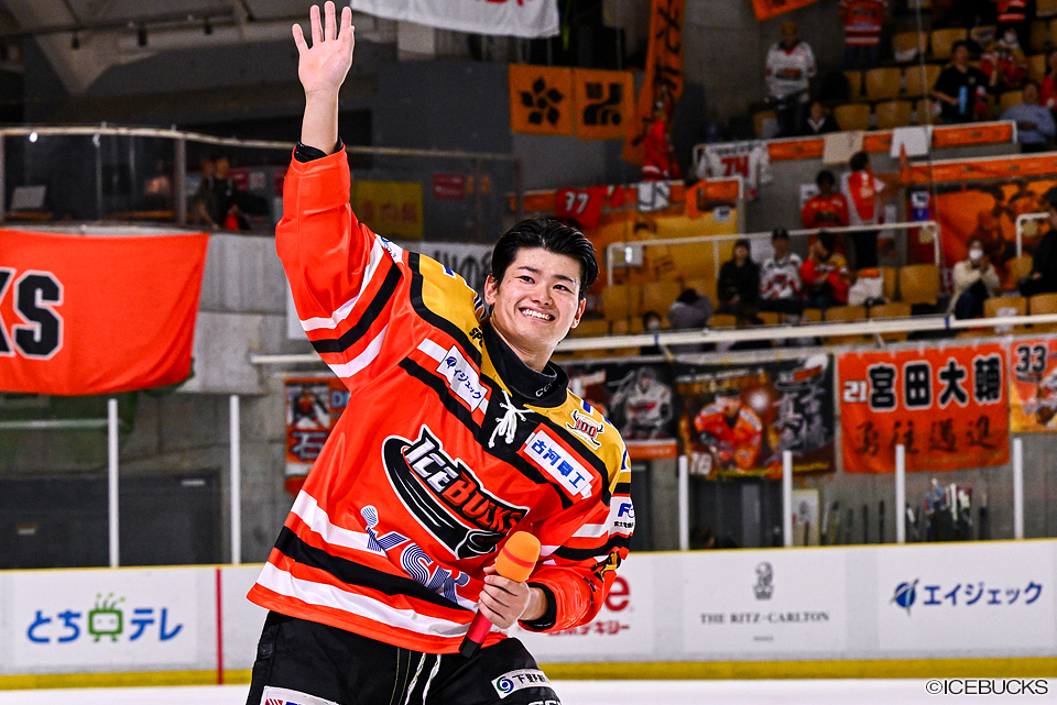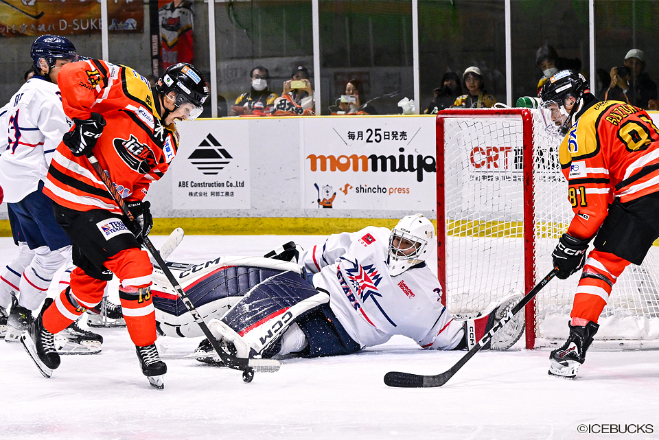 2025-2026シーズン10.5 SUN スターズ神戸2 H.C.栃木日光アイスバックス HOME 6 TOTAL 2 スターズ神戸 AWAY 1 1P 0 1 2P 1 4 3P 1 ①88. 寺尾(20.早田、29.伊藤) ②12.福田(48.清水、18.古橋) ③14.鈴木円(29.伊藤、21.宮田) ④11.大津(8.相馬、9.佐藤) ⑤81.鈴木健斗(48.清水、88.寺尾) ⑥14.鈴木円(17.ヤッコ、29.伊藤) 得点 ①48.渡邉(81.ユ、91.ワン) ②77.ホン ■藤澤悌史HCコメント試合の立ち上がりが良くなく、序盤10分ほどは神戸のペースで進行した。こちらが相手に主導権を渡してしまう展開であった。前日の試合では自分たちが主導権を握り、神戸に自由なプレーを許さなかったが、本日はその逆の展開となった。反応の遅れやバトルでの敗北、スケーティングの不足が見られ、パスの精度も悪く、全体的に後手に回る場面が多かった。第1ピリオド終盤からは徐々に自分たちのリズムを取り戻したものの、試合を通じて得点機を確実にものにすることができなかった。第3ピリオドでのカムバックやパワープレーからの連続得点は評価できるが、全体的には内容面で課題が残る試合であり、展開によっては敗戦していてもおかしくなかった。ゴールキーパー大塚の好セーブに救われた場面も多かった。 ■寺尾勇利選手コメントもし相手が別のチームであれば、今日は非常に危うい試合になっていたと思う。 自身のプレーについては、特別に「自己評価」という形では考えていないが、60分間を通して、自分のやるべきことを全うできたと感じている。 試合終了までしっかりと足を動かし、最後まで集中してプレーすることを意識した。 日頃から意識しているのは、「どのチームと対戦するか」ではなく、「自分がどのようなプレーヤーになりたいか」「どのような相手にとって嫌な存在でありたいか」という点である。その意味では、体をしっかりと当て、足を止めず、相手が嫌がるプレーを継続できた点は良かったと思う。 チーム全体としては、昨シーズンに比べ、やりたいホッケーがより実現できていると感じている。 個人のポイントや成績面で結果を残す選手はまだ少ないが、チームとしての方向性は一貫しており、その点は大きな成長だと思う。 ■福田充男選手コメント第1ピリオドは全体的に動きが重く、足がまったく動いていなかった。相手に圧倒される時間帯が多かったが、第3ピリオドで何とか立て直し、自分たちらしいホッケーを取り戻すことができたと思う。次戦は今季初のアウェイゲームになるので、相手に圧倒されることなく、自分たちのホッケーを貫けるように準備していきたい。アイスバックスは「足を動かすホッケー」が持ち味のチームだと思う。 スケーティングとロングスティックを活かしながら、自分たちの強みを発揮して勝利につなげたい。 ■鈴木円選手コメント試合の序盤は流れが悪く、良くない雰囲気になってしまいました。ただ、優勝を狙えるチームというのは、そうした状況でも勝ち切れるチームだと思います。第3ピリオドをしっかり締めて、勝ち切れたのは収穫でした。良いコンディションで試合に入れている時は、自分のプレーも通用しています。一方で、100%を出せない試合では何もできずに終わってしまうこともあるので、毎試合ベストパフォーマンスを出すことが今後の課題です。シュートだけでなく、味方がパックを持った時にゴールに向かう動きは、スキルよりも意識の問題だと思います。そうした基本的な部分を怠らず、今日はネットに向かう姿勢を持って臨めたと思います。 PHOTO GALLERY