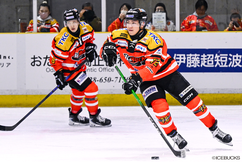 試合の立ち上がりは非常に良くありませんでした。相手が前日の試合で敗れており、今日はよりアグレッシブに来ることは想定していましたが、その勢いに対して十分な対応ができませんでした。先に失点したことで、どこかに油断やメンタル面での甘さが出てしまった部分もあったと思います。その後、試合が進むにつれてブレイクアウトが機能し始め、良いエントリーからチャンスを作れるようになりました。リアクションや意識の部分も第1ピリオドに比べて大きく改善し、チームとして前向きな流れを取り戻すことができたと感じています。特にパワープレーで得点できたことは、試合の流れを大きく引き寄せる重要なポイントでした。悪い流れの中でも崩れず、粘り強く戦えた点は、これまでとは違うチームの成長を感じる部分です。簡単にポイントを取れる相手はいませんが、ホームで連勝し6ポイントを獲得できたことは非常に大きいです。次の試合も、システム以前に一つひとつの局面での反応や強度を徹底し、チーム全体で勝利を目指していきたいと思います。■鈴木健斗選手コメント