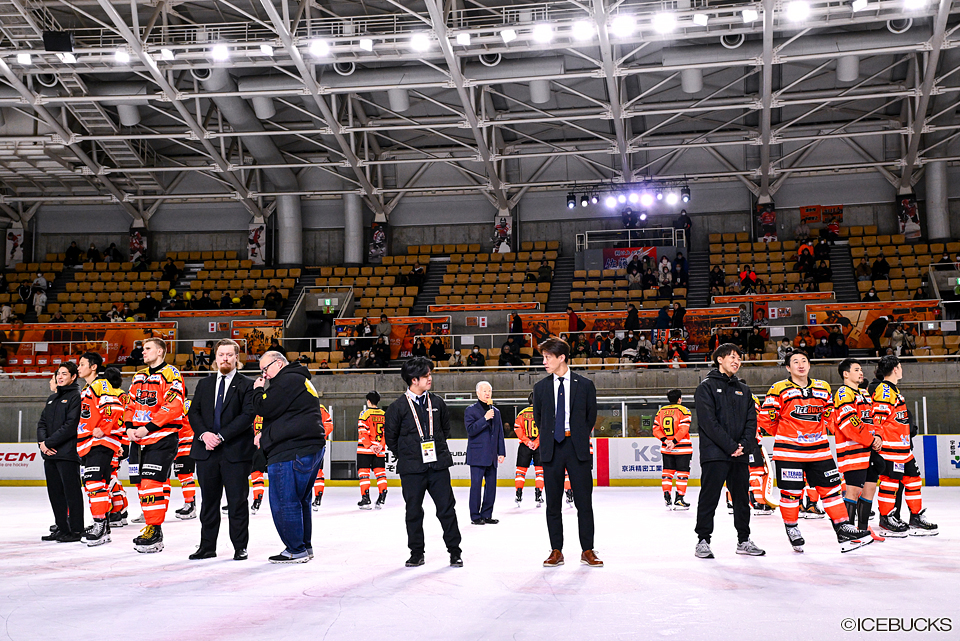 2025-2026シーズン12.28 SUN 東北フリーブレイズ6 H.C.栃木日光アイスバックス HOME 6 TOTAL 3 東北フリーブレイズ AWAY 2 1P 3 2 2P 0 2 3P 0 ①81.鈴木健 (88.寺尾、13.出口) ②88.寺尾 (81.鈴木健、15.村瀬) ③77.ヨーナス (17.ヤッコ、11.大津) ④48.清水(18.古橋) ⑤81.鈴木健(18.古橋、88.寺尾) ⑥72.石田(21.宮田、15.村瀬) 得点 ①28.鎌田 ②16.武部(5.ウィチャーズ、11.猪狩) ③78.ボイバン(11.猪狩、16.武部) ■藤澤悌史HCコメント 試合の立ち上がりは非常に良くありませんでした。相手が前日の試合で敗れており、今日はよりアグレッシブに来ることは想定していましたが、その勢いに対して十分な対応ができませんでした。先に失点したことで、どこかに油断やメンタル面での甘さが出てしまった部分もあったと思います。その後、試合が進むにつれてブレイクアウトが機能し始め、良いエントリーからチャンスを作れるようになりました。リアクションや意識の部分も第1ピリオドに比べて大きく改善し、チームとして前向きな流れを取り戻すことができたと感じています。特にパワープレーで得点できたことは、試合の流れを大きく引き寄せる重要なポイントでした。悪い流れの中でも崩れず、粘り強く戦えた点は、これまでとは違うチームの成長を感じる部分です。簡単にポイントを取れる相手はいませんが、ホームで連勝し6ポイントを獲得できたことは非常に大きいです。次の試合も、システム以前に一つひとつの局面での反応や強度を徹底し、チーム全体で勝利を目指していきたいと思います。 ■鈴木健斗選手コメント 試合前から、昨日のような簡単な展開にはならないと選手には伝えていました。ただ、スタートで先制したことで、どこかに「また昨日のようになるのでは」という緩みが出てしまい、結果的に第1ピリオドは自分たちのペースを完全に失ってしまいました。相手が良かったというよりも、体も頭も動いておらず、戦う準備が整っていなかったというのが正直なところです。それでも、第2・第3ピリオドに向けてミーティングを重ね、立て直すことができたのは、今のチームの成長した部分だと思います。第1ピリオドの入りが試合展開を難しくしてしまいましたが、自分たちのホッケーに戻ることで流れを取り返すことができました。今日は逆転することができましたが、今後は簡単に点が取れず追いつけない試合も出てくると思います。だからこそ、あのようなスタートは二度と繰り返してはいけないと強く感じています。 シーズン前半を振り返ると、練習時間が十分に取れない中でも、勝点を積み重ねることができています。イーグルス戦も年明けに残っており、そこがリーグの行方やプレーオフ争いを大きく左右することになると思いますが、ここまではチームとして非常によく戦えていると感じています。まだシーズンは半分を少し過ぎた段階で、若い選手も試合を重ねるごとに確実に成長しており、後半戦が楽しみです。 ■寺尾勇利選手コメント 第1ピリオドは、正直自分たちのホッケーができませんでした。全日本選手権からの疲労もあり、メンタルの部分で難しさが出たと思います。ただ、その中でも元気のある選手が声を出し、普段出場機会の少ない選手も含めてベンチから雰囲気を作ってくれました。そうした声掛けには助けられましたし、そこから徐々に自分たちのリズムを取り戻すことができたと感じています。試合の流れとして、第1ピリオドのような展開自体は起こり得るものですが、今までのチームであれば、そのままずるずると流れを手放してしまうことも多かったと思います。今年のチームは、苦しい経験を積んできた選手が多く、特に主力として出場している選手たちは、厳しい要求の中でプレーしてきました。その積み重ねが、試合の中で踏みとどまれる力につながっていると感じています。個人としては、ポイントを意識しすぎると自分のプレーを見失ってしまうタイプなので、今シーズンは「セットの循環を良くすること」「パック保持率を高めること」を意識しています。パックを長く持てればチャンスは自然と増えますし、守る時間も減ります。その延長線上に結果がついてきていると感じており、変わらずパックを大切にすることに集中しています。 ■石田聖弥選手コメント 第1ピリオドは3−2で、流れ的には相手がやや押していた印象でしたが、ベンチ内では特に焦りはありませんでした。自分たちのプレーをすれば負ける相手ではないという共通認識があり、第2ピリオド開始前に選手同士で意識を切り替えようと話しました。全日本選手権の時のように、ベンチからポジティブな雰囲気を作ろうと声を掛け合い、その結果、第2ピリオドに逆転し、最後まで失点せずに試合を終えることができました。シーズン最後に、非常に良い勝ち方ができたと思います。特に、第2ピリオド前のベンチの雰囲気は大きな変化でした。声掛けが増え、やるべきことが明確になり、チームとして一体感を持って試合