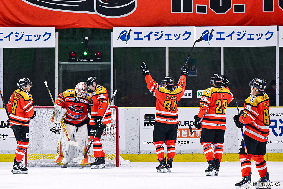 2025-2026シーズン12.6 SAT 東北フリーブレイズ3 H.C.栃木日光アイスバックス HOME 2 TOTAL 0 東北フリーブレイズ AWAY 1 1P 0 0 2P 0 1 3P 0 ①81.鈴木健(20.早田、88.寺尾) ②13.出口(9.佐藤、20.早田) 得点 ■藤澤悌史HCコメント 本日の試合は、全体として「我慢を求められる展開」となりました。チームとしては多くのスコアリングチャンスを創出したものの、逆に相手にも決定的な場面を許すシーンが見られました。その中で、大塚選手を中心に粘り強い守備を継続し、無失点で終えられたことは非常に評価できるポイントです。得点シーンに関しては、ディフェンスからの積極的なネット前への侵入、スクリーンやディレクションによる角度の変化など、単発のシュートでは得点が難しい中でも意図した形を作ることができました。一方で、ネット前でのプレッシャーやコンタクトなど、まだ改善すべき点もあると感じています。明日の試合に向けては、今日と同様の準備を継続し、ホームでの連勝という今季のテーマを達成するべく、チーム一丸となって臨んでいきます。 ■鈴木健斗選手コメント 今日はチーム全体としてとても良い内容だったと思います。いくつかピンチはありましたが、やるべきことを徹底し、全員がいいプレーを続けられました。平日の練習の質が今シーズンの安定した結果につながっていると感じています。守備の意識も高く、今年はペナルティが少ないことも強みです。失点を我慢できれば勝機は必ず巡ってくるので、今日のような試合を勝ち切れたことは大きな自信になります。個人的には、しばらく得点に絡めていなかったので、先制点を決められて良かったです。練習してきた形が結果につながりました。明日は今日以上に厳しい試合になると思いますが、自分たちのホッケーを貫くことが大切です。良い準備をして、相手よりも高いパフォーマンスを出せるように臨みたいと思います。 ■出口圭太選手コメント 本日の試合は、アンラッキーな形でピンチを迎える場面もありましたが、60分間を通して自分たちのホッケーをしっかりと出せた試合だったと思います。個人的には、身体のコンディションも良く、動きも軽かったので「チャンスが来れば決められる」と感じながらプレーできました。その中で実際に得点できたのは良かったです。明日に向けて、特別大きく変える必要はないと感じています。今日のように全員が足を動かしてフォアチェックに行き、絡んでパックを奪い、オフェンシブゾーンでしっかり攻められれば、必ず流れはつかめるはずです。それを継続していきたいです。 ■大塚一佐選手コメント 今日はシュート数こそ多くはありませんでしたが、バックスが主導権を握る時間帯でも、相手のカウンターから危ない場面がいくつかありました。その中でも、ディフェンス陣を含めて危険なエリアからのシュートをしっかり“セーブする形”にもっていけていたので、まずはゼロに抑えられて良かったと思います。シーズンを通して接戦が多く、自分が出る試合もタイトな展開が続いていますが、負けた試合もあれば勝てた試合もあり、そうした積み重ねが今日につながったのかなとも感じています。 PHOTO GALLERY