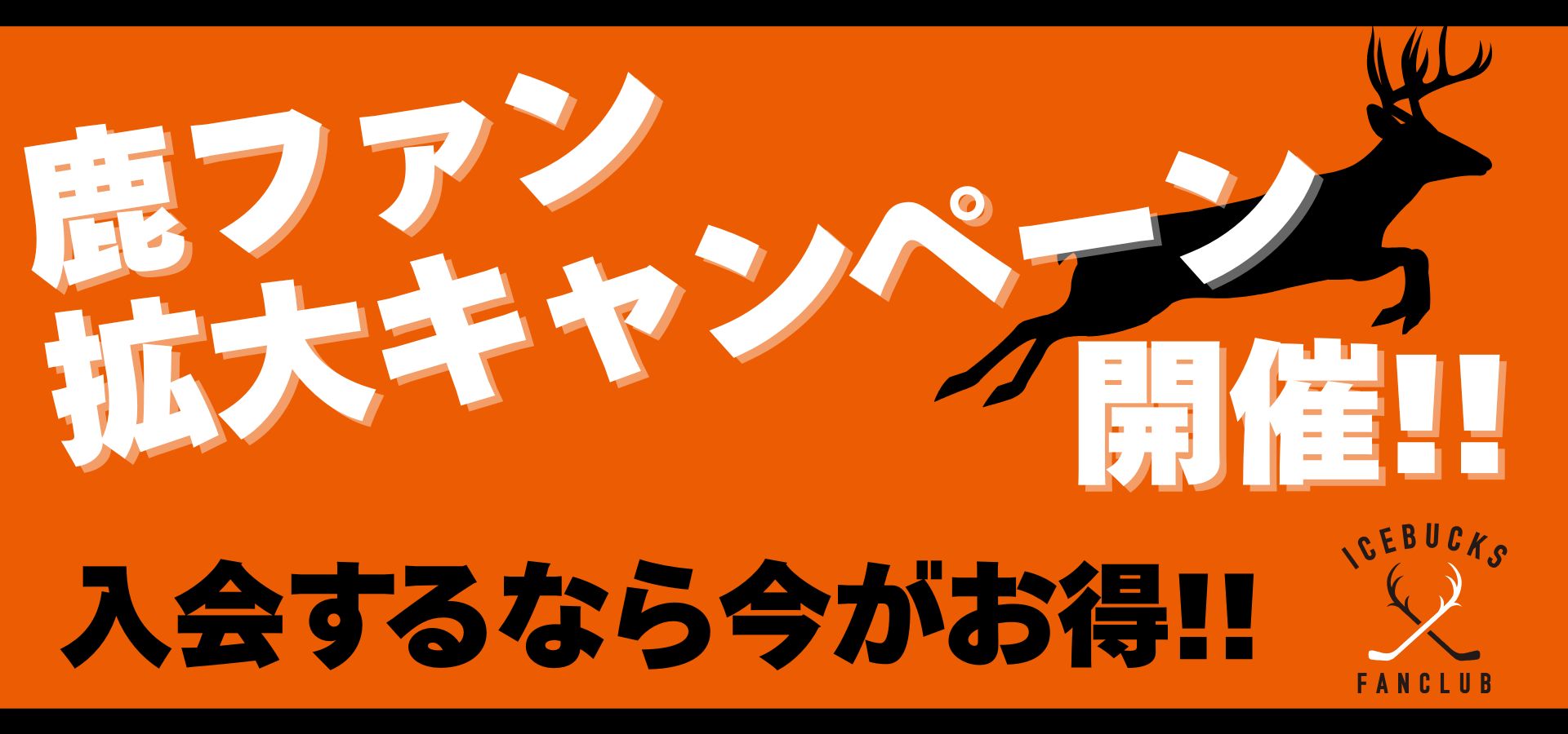 H.C.栃木日光アイスバックス公式ファンクラブでは、10月3日(金)より、更なる新戦力を募集すべく「鹿ファン拡大キャンペーン」と題して、新規入会キャンペーンと早期入会キャンペーンを実施いたします。