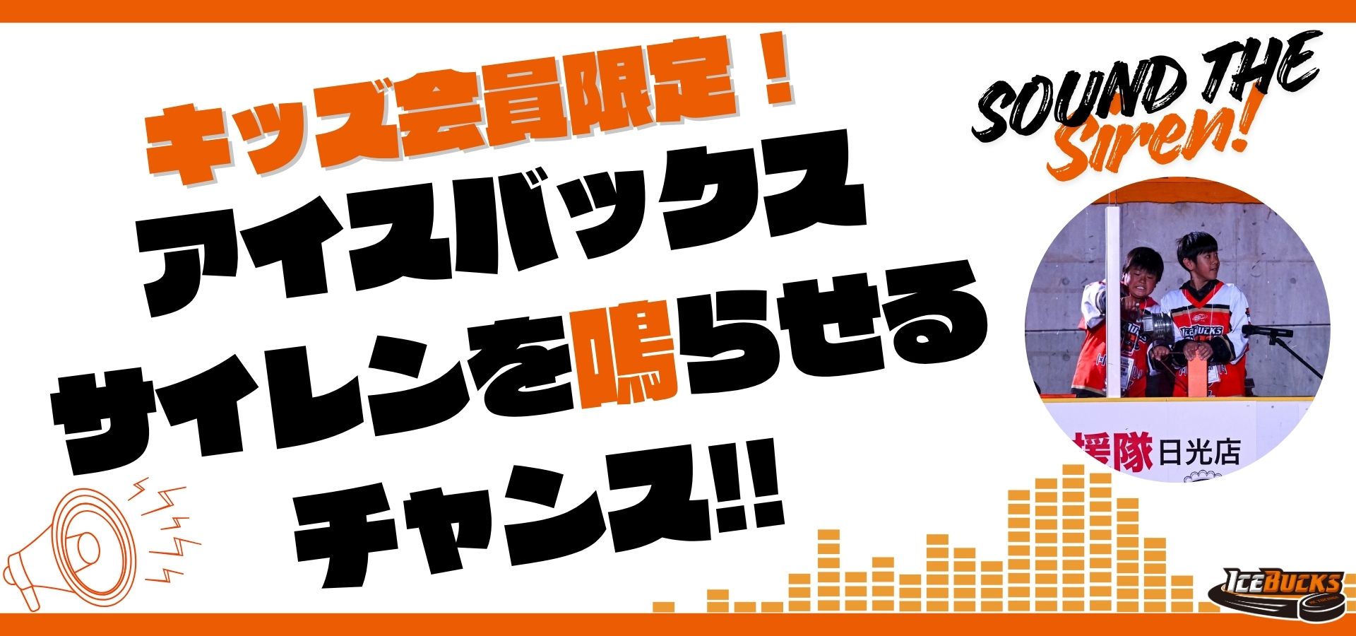 H.C.栃木日光アイスバックス公式ファンクラブでは、11月8日(土)、9日(日)に開催のH.C.栃木日光アイスバックス vs 横浜GRITS戦にて、キッズ会員限定で試合前の「アイスバックスサイレン」を実施していただける方を募集いたします。