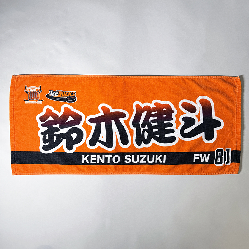 選手それぞれの背番号と名前がプリントされた手触りの良いフェイスタオルに、今シーズンは100周年記念ロゴもデザインしました。選手の名前がよく目立ち、リンク上の選手の目にも届きやすいアイテムとなります。