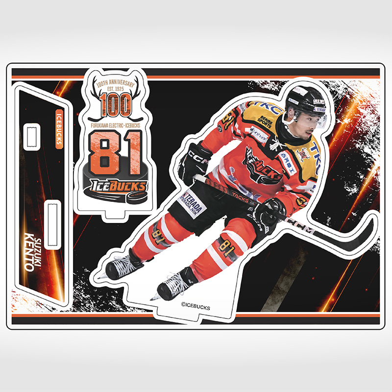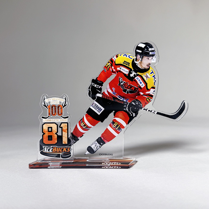 選手がプレーしている姿をアクリルスタンドに落とし込みました。