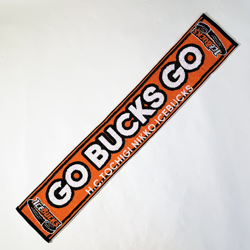 日本製のやわらかな生地に、チームロゴと「GO BUCKS GO」のメッセージをジャガード織りでデザインしました。プリントでは表現できない立体感と高級感があり、色落ちしにくく、長くご使用いただけます。
