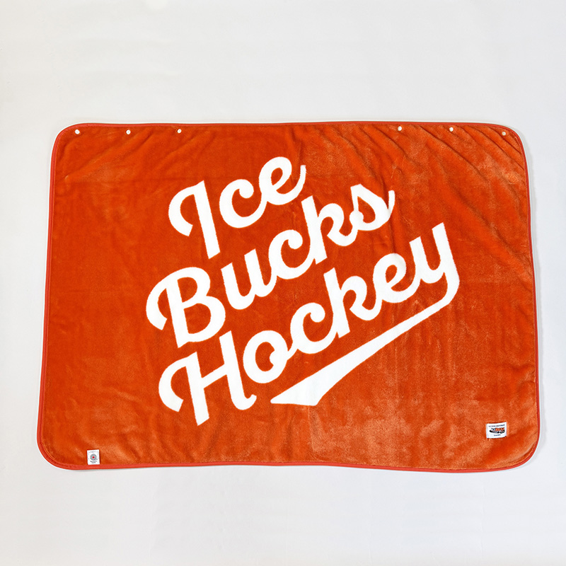 やさしい肌ざわりとぬくもりに包まれる、あたたかいブランケット。 アイスホッケー観戦時の寒さ対策を想定し、サイズ感・保温性・使いやすさにこだわって別注した、アイスバックスオリジナル仕様となっています。