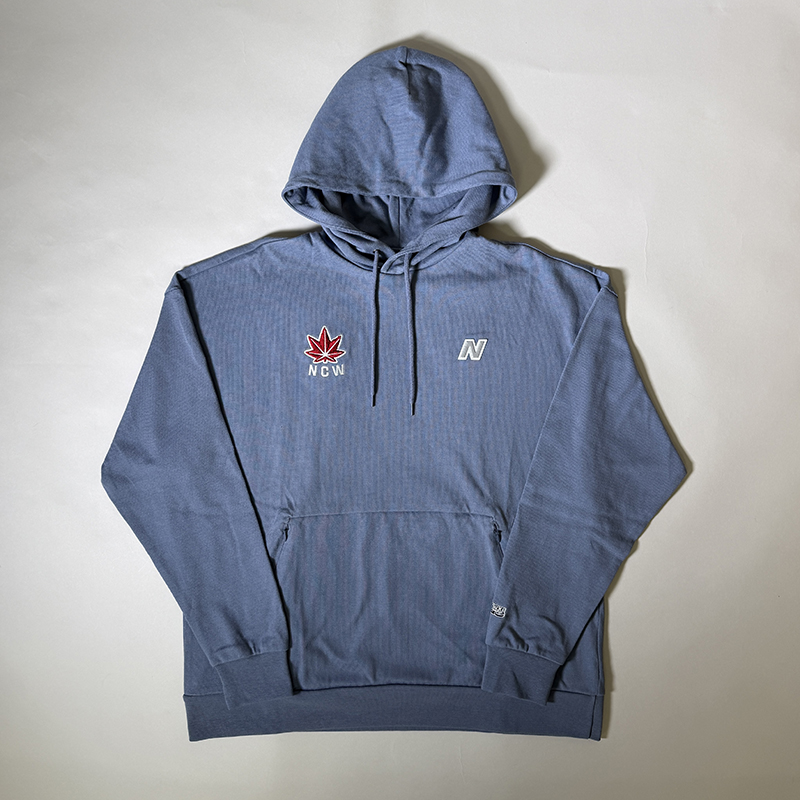 天然素材の良さを活かしたNew Balance “N”シリーズのフーディーに、NCW復刻ユニフォームで使用された「紅葉とNCW」ロゴを右胸に刺繍。左袖にはアイスバックスロゴを施し、特別感のあるデザインに仕上げました。