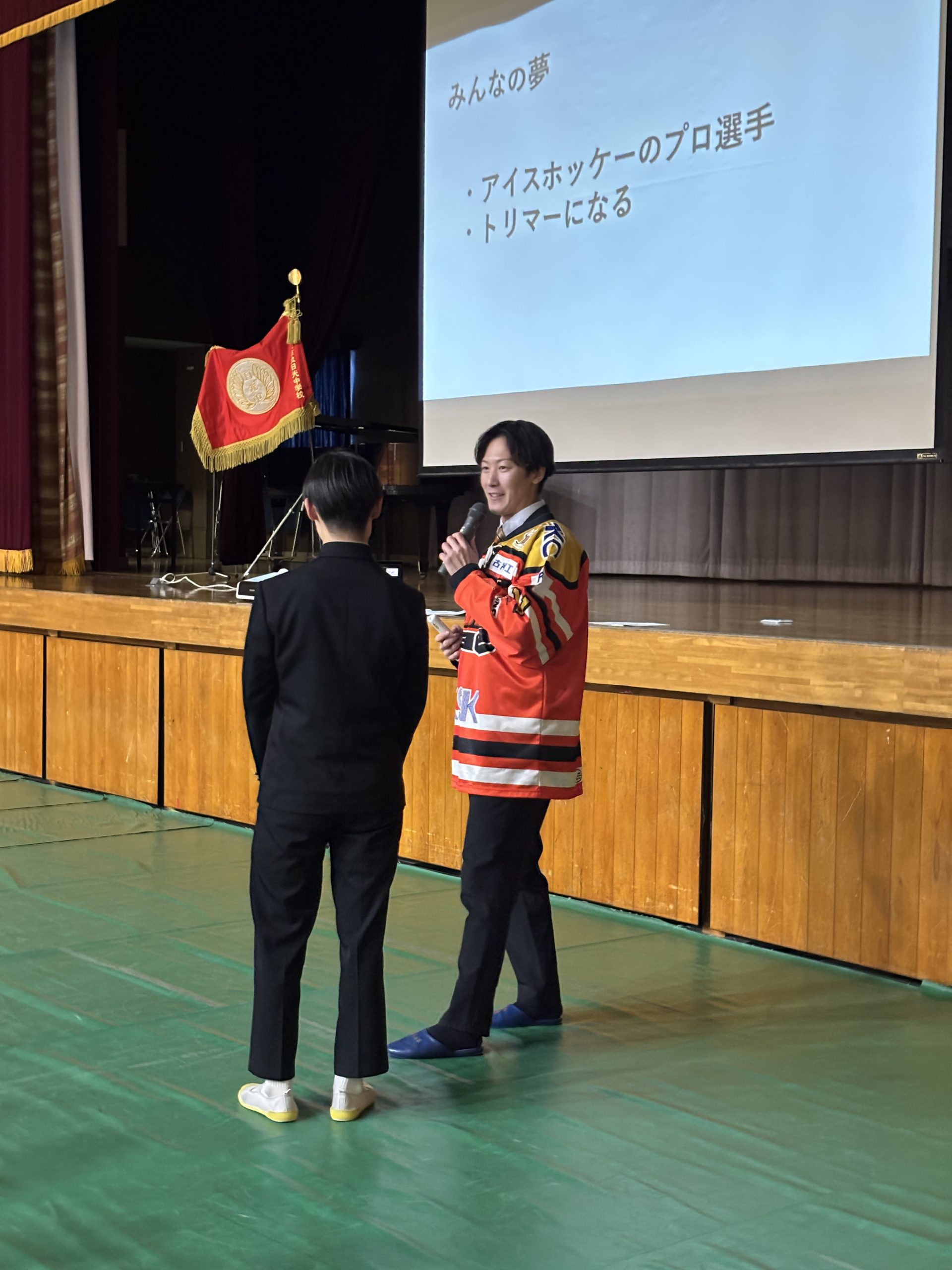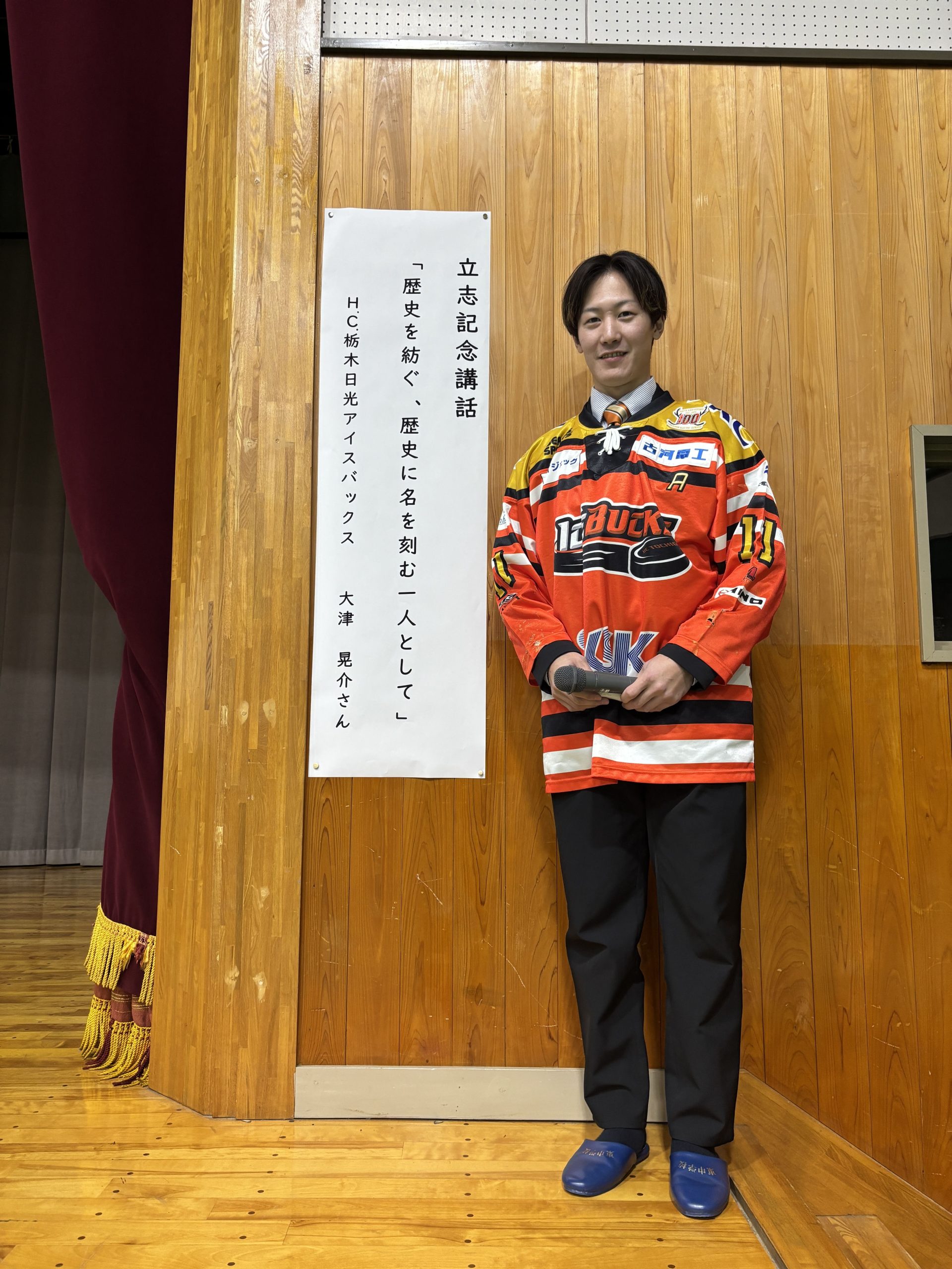 2月12日(木)日光市立日光中学校を大津晃介選手が訪問し、第2学年立志式にて「夢を叶えるために今の自分を変えよう」をテーマに講話を行いました。