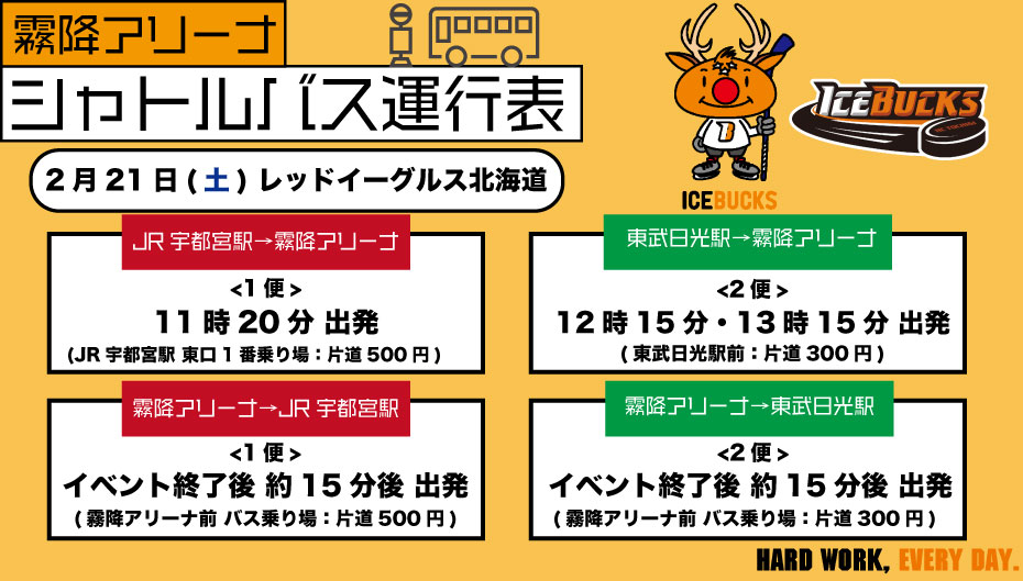 ※宇都宮-霧降アイスアリーナ間のシャトルバスについてご案内です。
