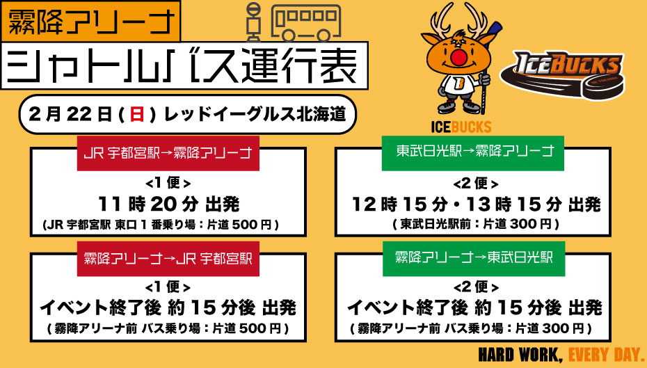 ※宇都宮-霧降アイスアリーナ間のシャトルバスについてご案内です。