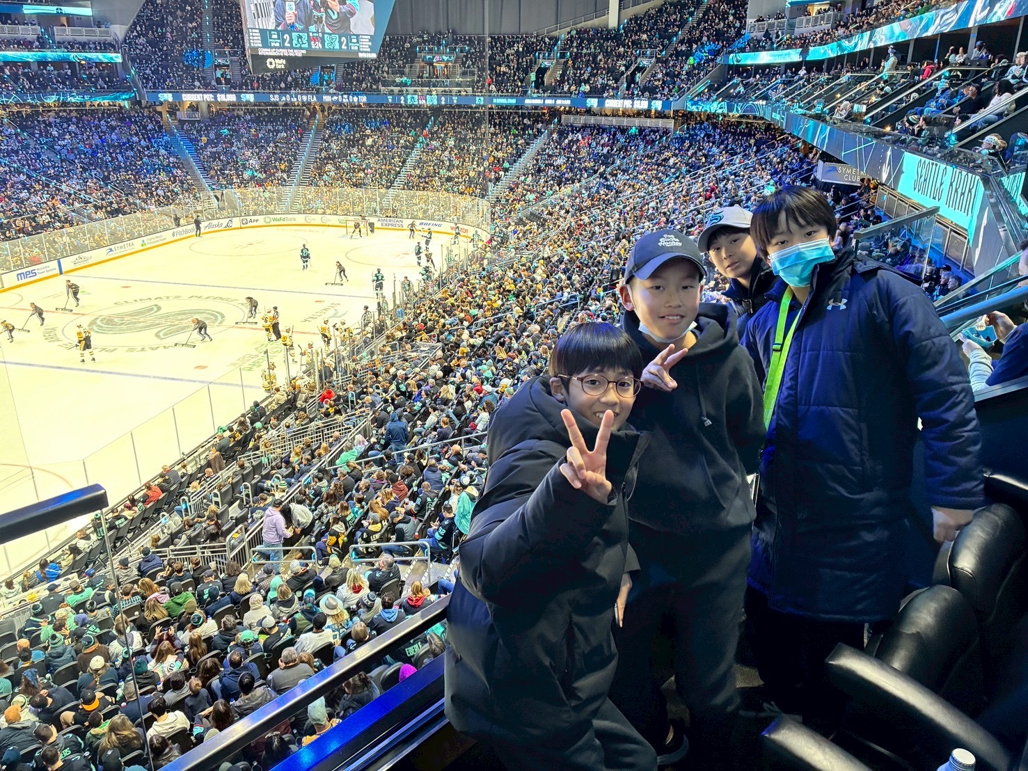 今回のご招待に対するお礼を直接お伝えし、記念撮影も行いました。あわせて、Lampmanさんのお名前が入ったアイスバックスのユニフォームをお渡しさせていただきました。リンクでの練習では、相手チームであるピッツバーグ・ペンギンズのカナダ代表キャプテン、シドニー・クロスビー選手を間近で見ることもでき、子どもたちは大興奮でした。