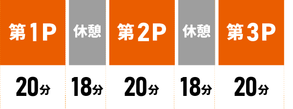 1チームは22人から構成されますが、実際に氷上で戦うのは6人です。キーパー(アイスホッケーではゴーリーと呼びます)1人の他に5人の選手が1組になり、これをセットと呼びます。セットはディフェンス2人とフォワード3人の5人編成で、第1セット、第2セットというように呼びます。1人のプレー継続時間は45秒が限界なので、自由に交代ができます。
